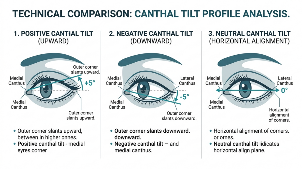 Clinical studies show neutral canthal tilt is the most common trait across diverse ethnic groups, yet it is the least discussed in aesthetic medicine. Most patients request positive tilt adjustments, unaware that neutral tilt correlates with higher perceived trustworthiness and approachability in cross-cultural research. This is a counter-intuitive finding most generic guides ignore: extreme tilt adjustments often make patients look “overdone,” while neutral tilt preserves natural expression.
